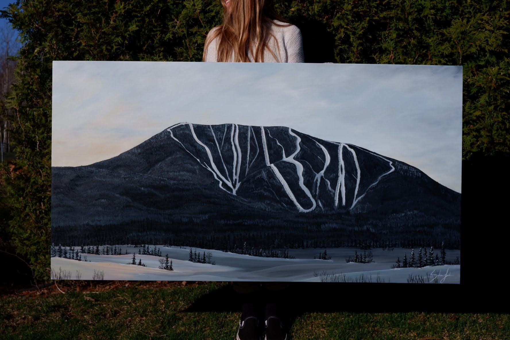 Le Mont-Sainte-Anne Été 2022.Acrylique sur toile, 60 x 32 pouces.Commande faite sur mesure. Retour à la galerie