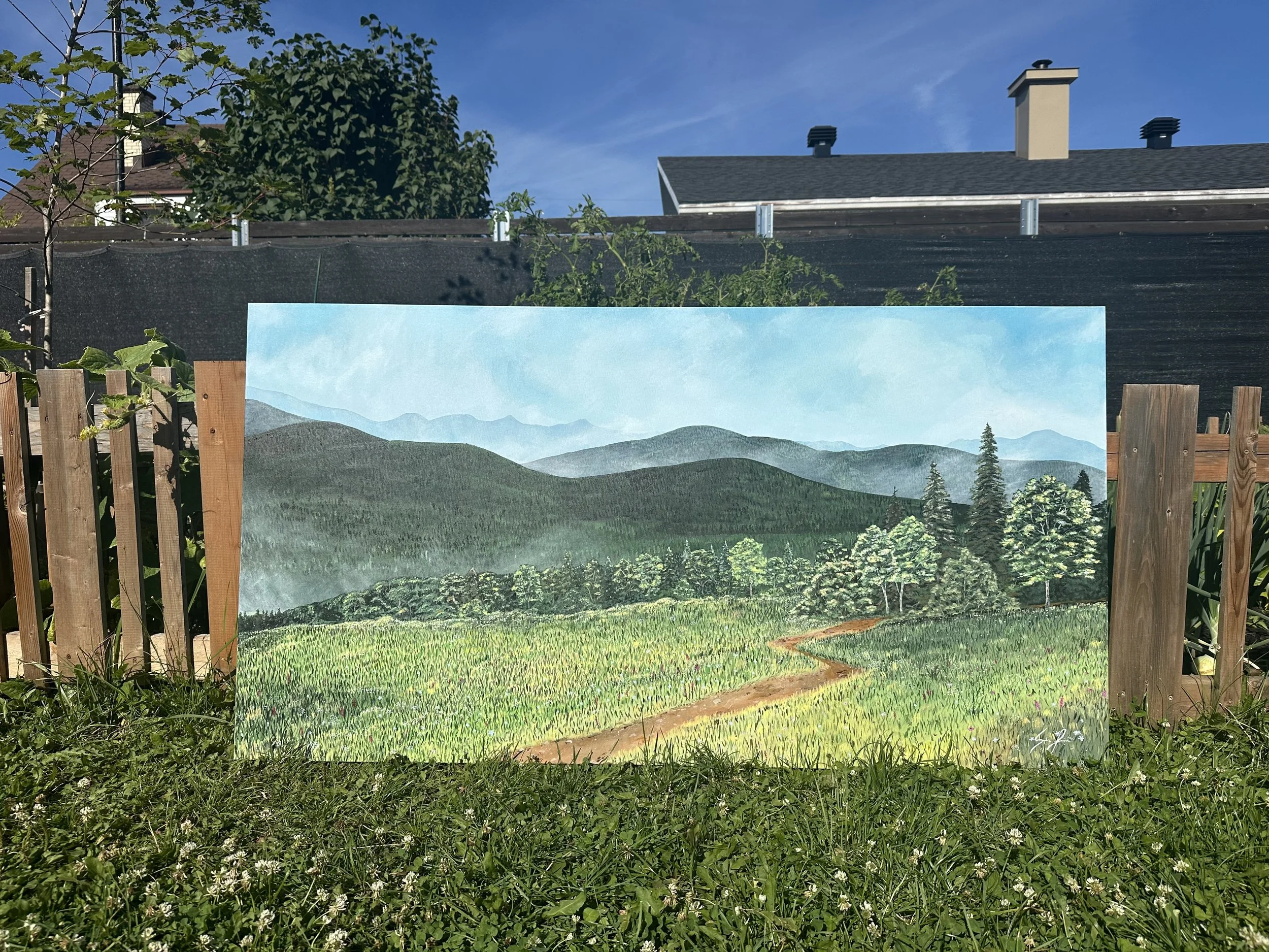 La Baptême. Été 2025. Acrylique sur toile, 60 x 32 pouces.Commande faite sur mesure. Retour au portfolio