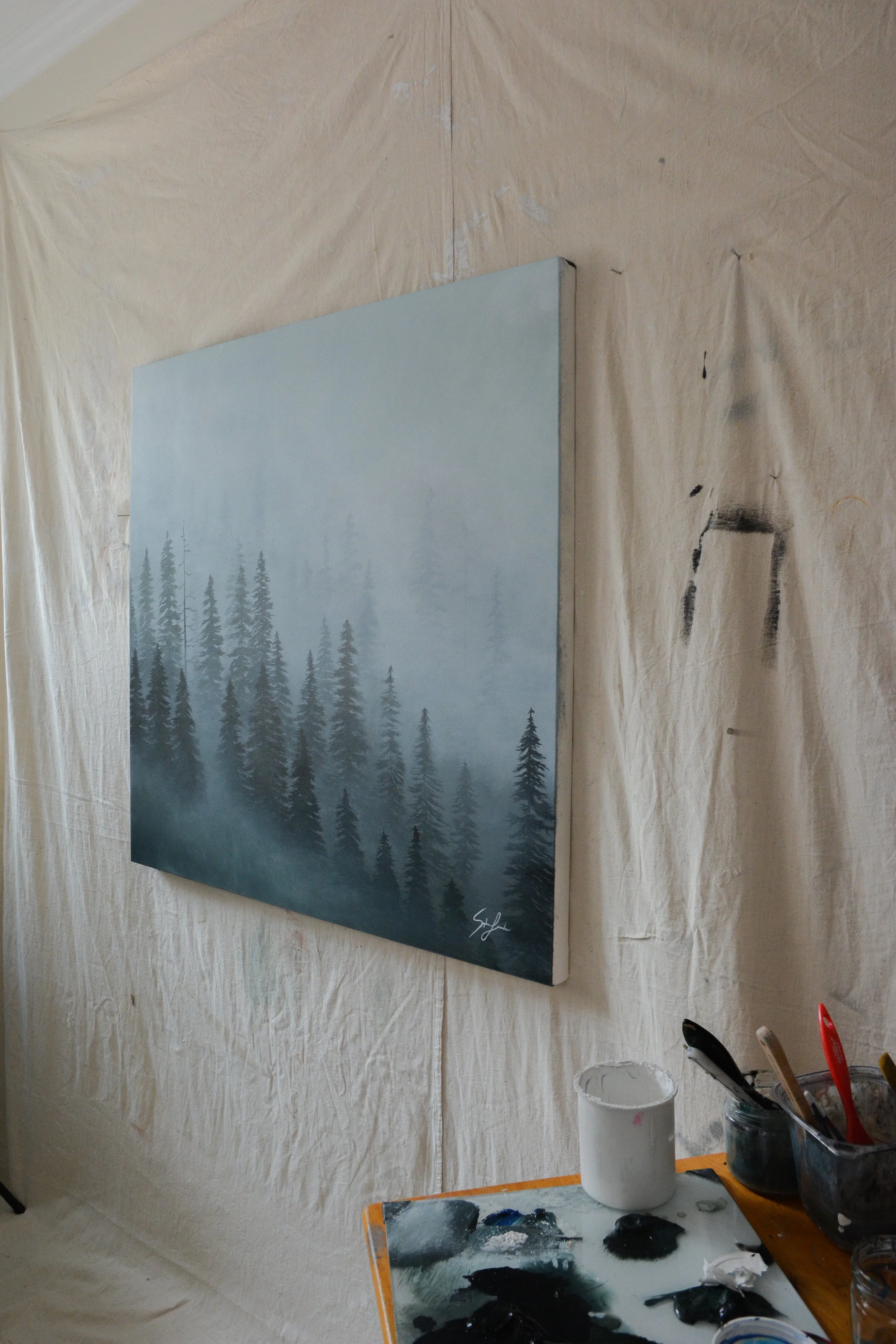 Le souffle. Été 2023. Acrylique sur toile, 36 x 36 pouces.Commande faite sur mesure. Retour au portfolio